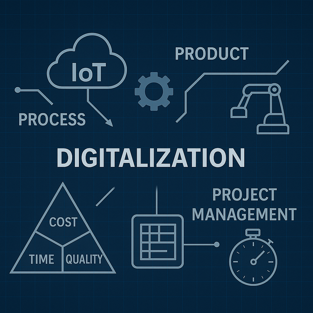 Combined experience from over 15 years of technical practice in industry, project management, and product development – from the workshop floor to the management level..